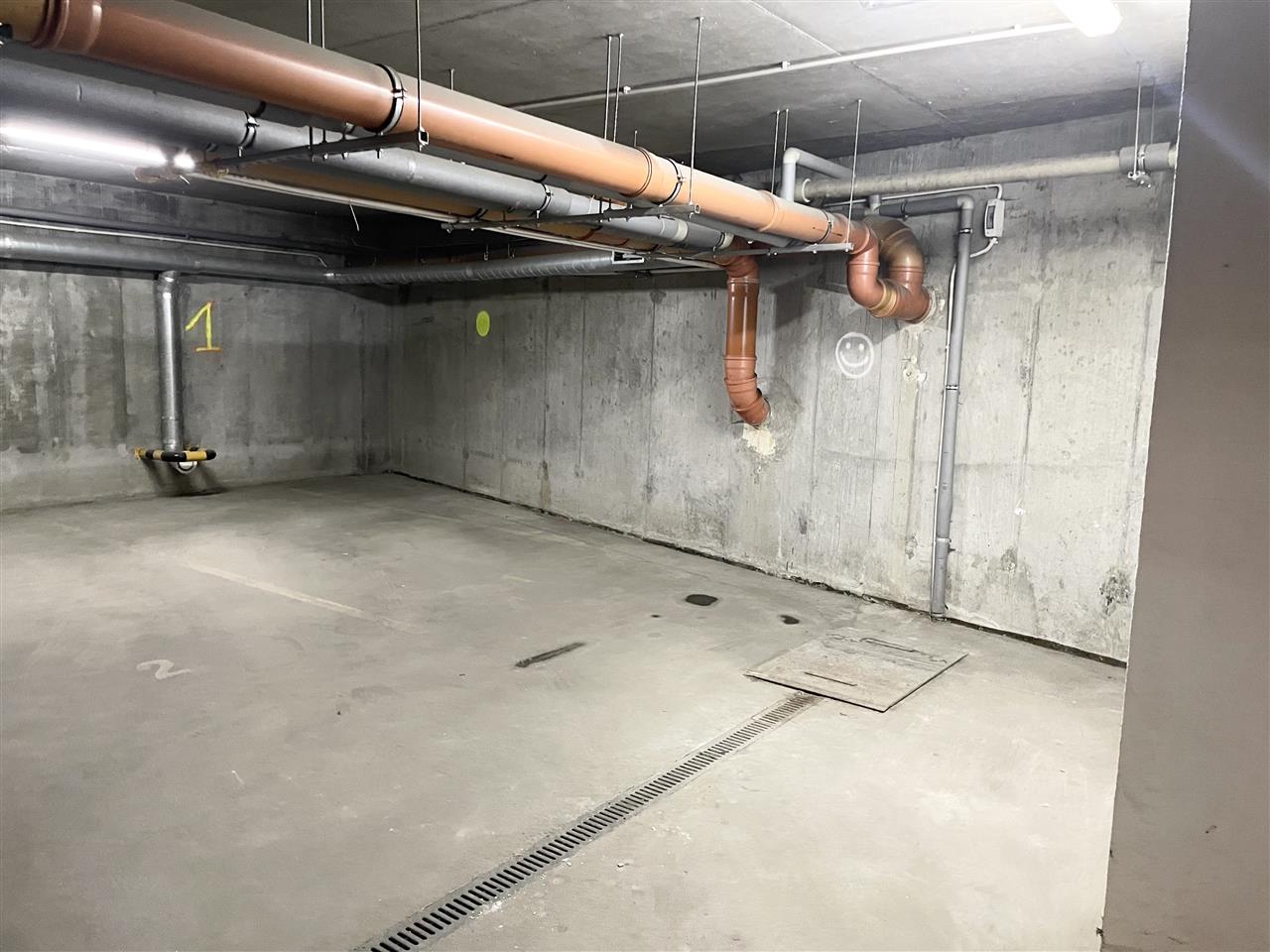 Miejsce znajduje się w jednej dużej hali garażowej w nowoczesnym bloku mieszkalnym.