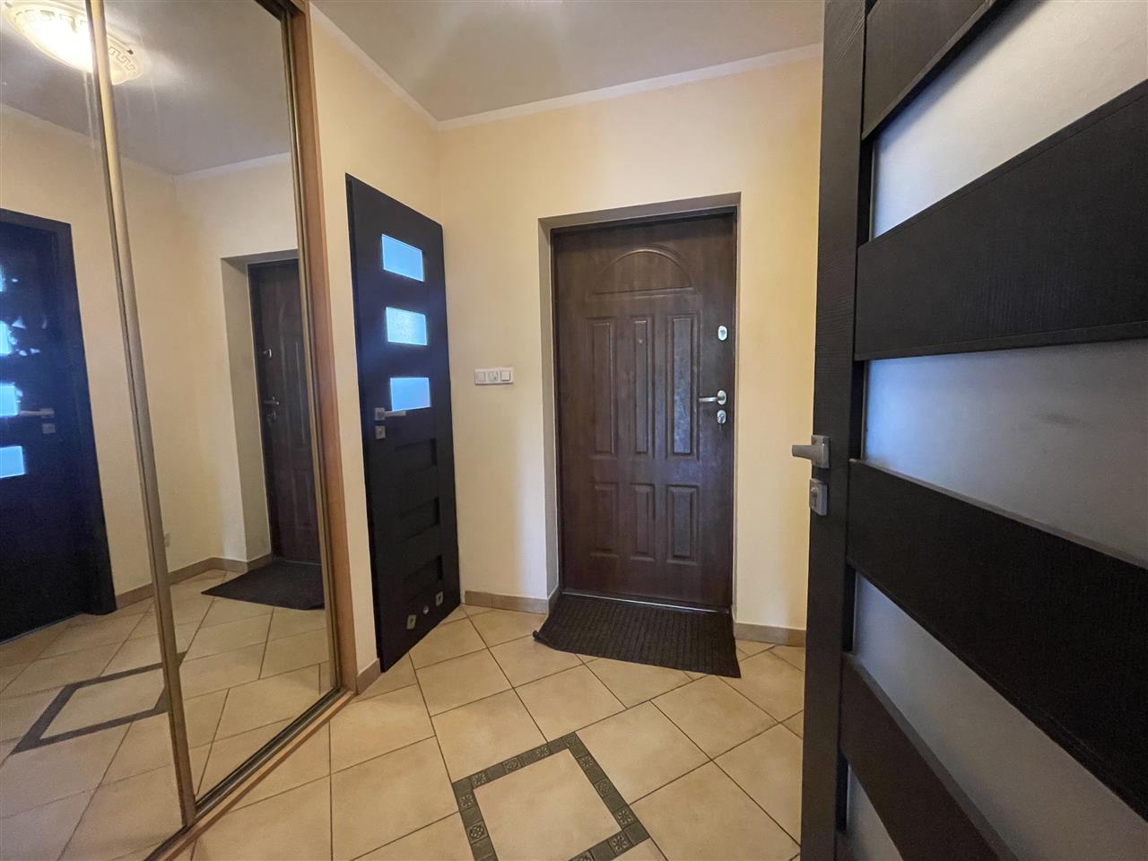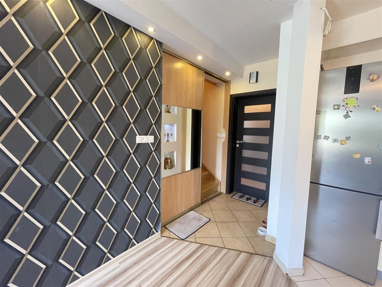 – Hol wejściowy z szafą w zabudowie oraz pomieszczeniem gospodarczym z oknem