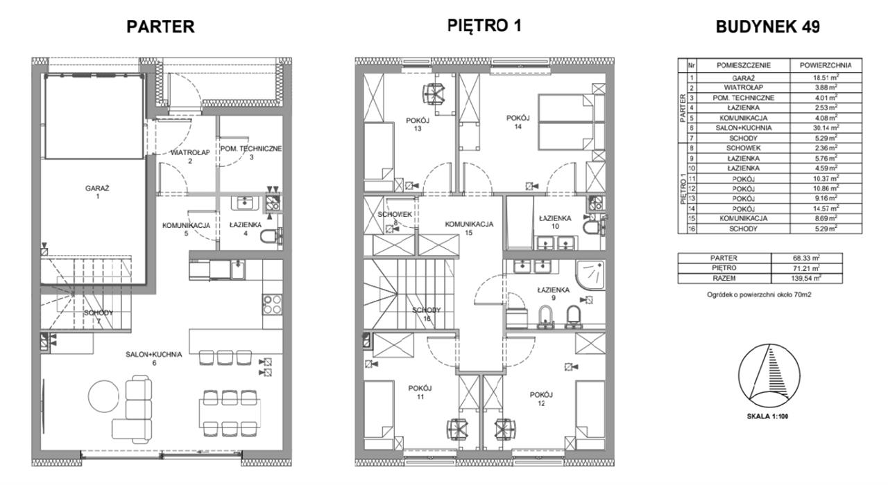 Wysokość budynku 3 kondygnacje (parter, 1 piętro, poddasze)