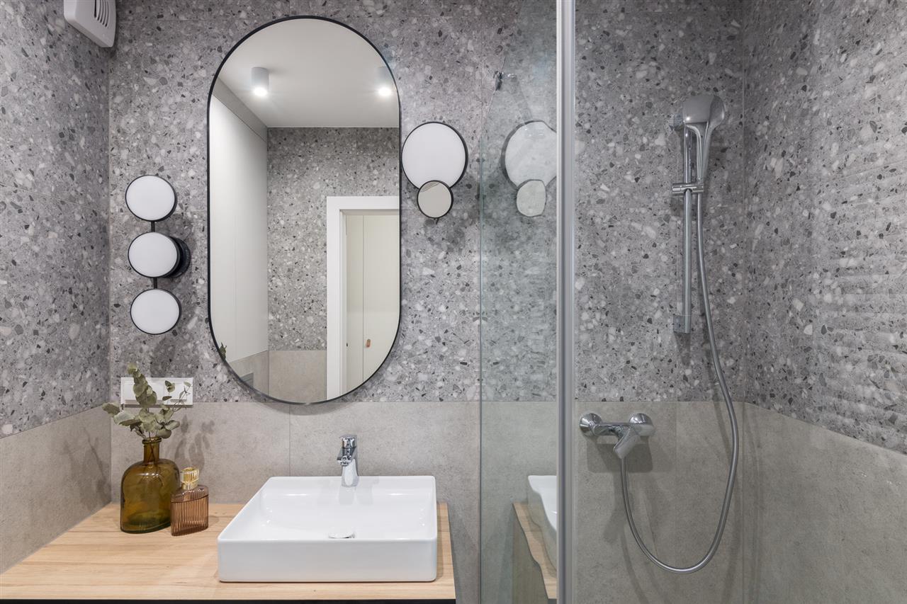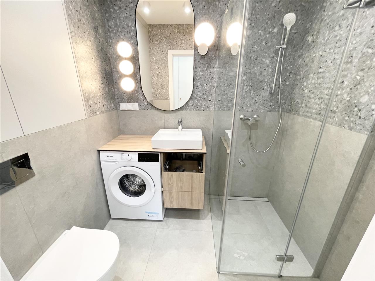 Łazienka - prysznic, toaleta, umywalka, pralka, lustro,