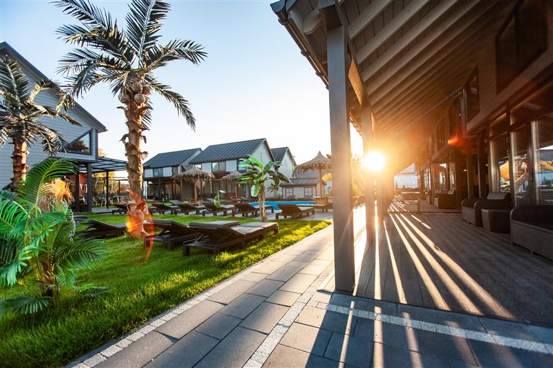 Kompleks Royal Palm to niecodzienne miejsce z egotycznym klimatem, 12 domków całorocznych, parterowych z użytkowym poddaszem, w komfortowej odsłonie przygotowane pod gości ceniących klasyczne wnętrza z nutką elegancji.