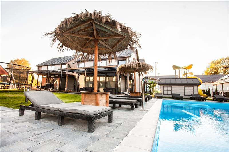 Dla dzieci: plac zabaw, trampolina i oczywiście basen dla gości kompleksu.