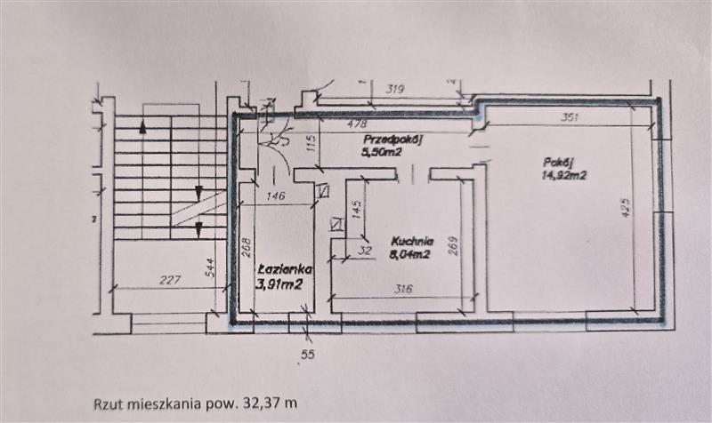 Oferujemy do sprzedaży mieszkanie 1 pokojowe położone na I piętrze w budynku  dwupiętrowym przy ul. Łużyckiej.