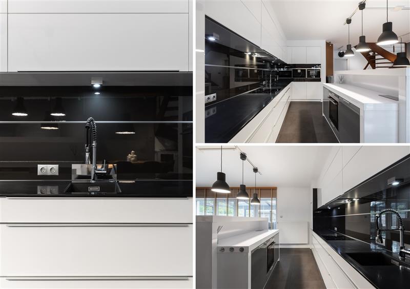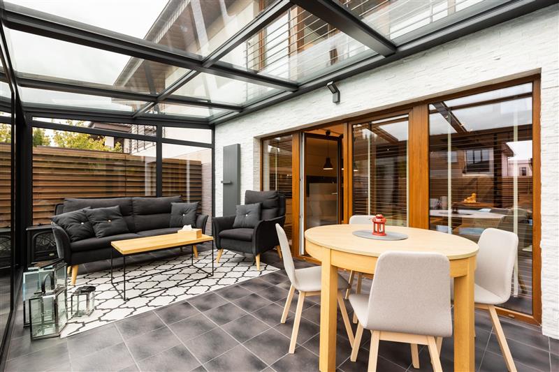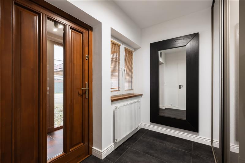 Parter obejmuje: wiatrołap z szafą w zabudowie, salon z aneksem kuchennym o powierzchni 34,57 m2, WC, druga kuchnia o powierzchni 17,22 m2 , która powstała po przebudowaniu pomieszczenia garażowego oraz piękny duży ogród zimowy, ogrzewany, w konstrukcji aluminiowej. Kuchnia w pełni wyposażona w sprzęt AGD: piekarnik elektryczny, piekarnik parowy, kawiarka w budowana, mikrofala, zmywarka, lodówka z zamrażalnikiem, płyta indukcyjna, młynek do odpadów.