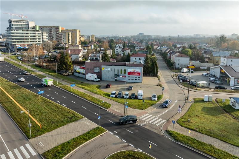 Nieruchomość jest doskonale skomunikowana – w sąsiedztwie znajdują się przystanki komunikacji miejskiej, a sprawny dojazd drogami głównymi zapewnia szybkie połączenie z centrum miasta i pozostałymi dzielnicami. Lokalizacja umożliwia także łatwy wyjazd w kierunku tras regionalnych i krajowych.