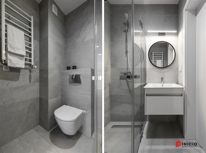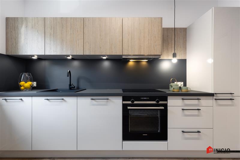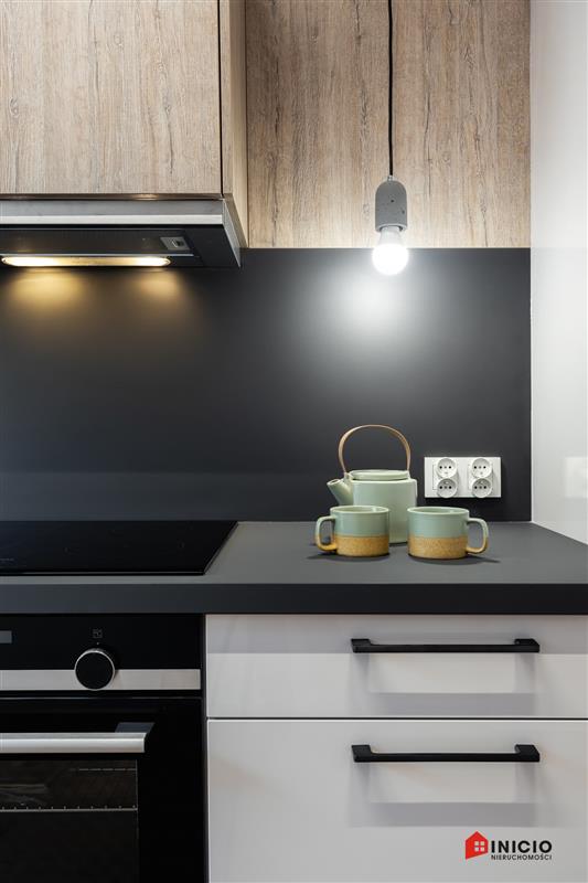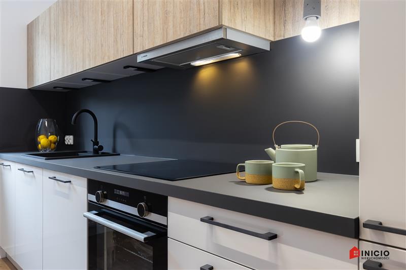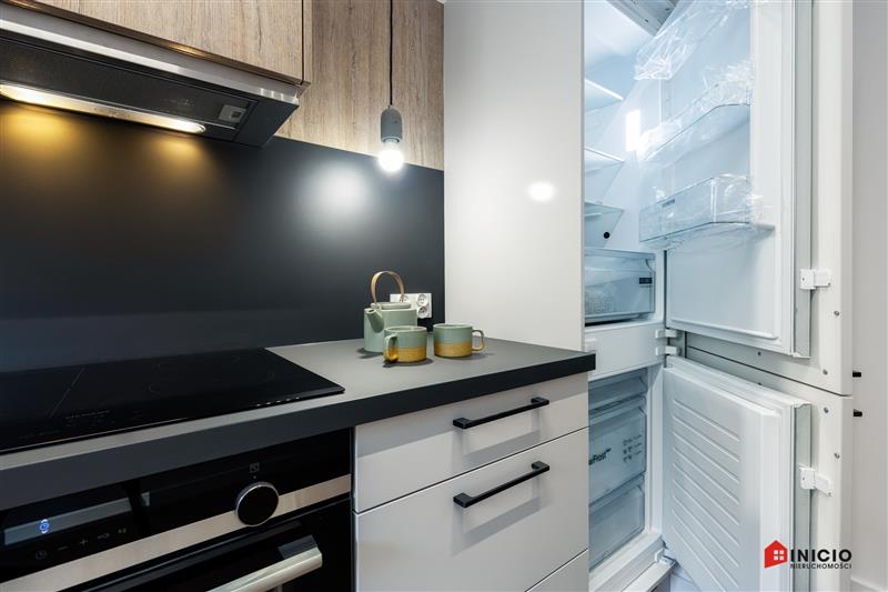 Lokal został wykończony pod klucz, z wysokiej jakości materiałów. Drzwi marki Dewro, włoskie płytki Marazzi i Imola w łazience i na podłogach w całym mieszkaniu, kuchnia oraz inne meble firmy Haecker, nowy sprzęt AGD w kuchni marki Bosch/Siemens, ceramika Duravit, oświetlenie Nowodvorski i AQform.