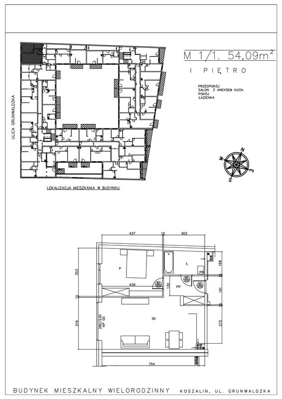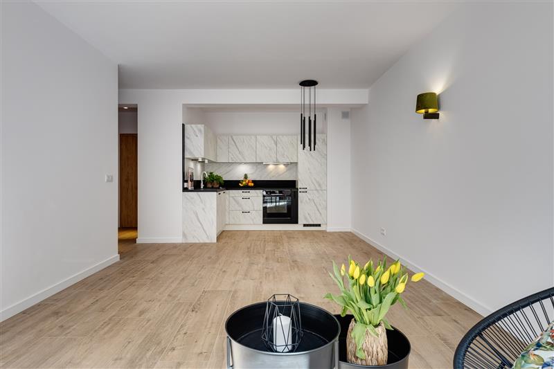 Oferowane mieszkanie o powierzchni 54,09 m2, składa się z salonu z aneksem kuchennym, przestronnej sypialni, łazienki oraz przedpokoju.