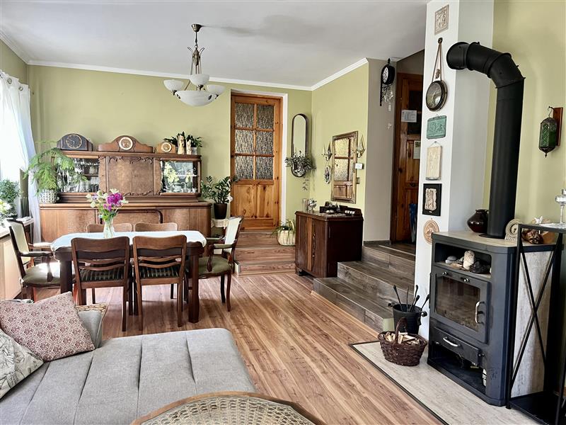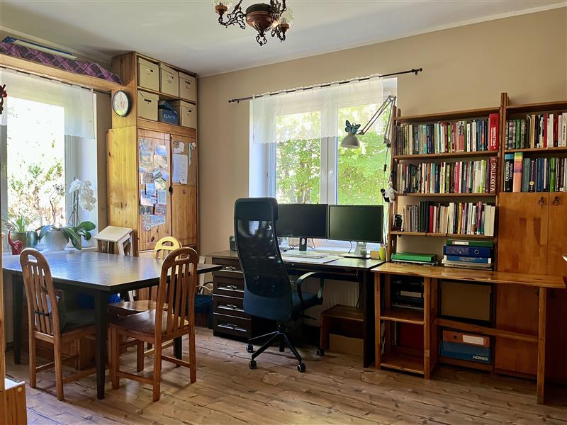 Część piwniczna domu znajduje się pod starą częścią budynku, z bezpośrednim wyjściem na ogród – idealna na pracownię, spiżarnię lub dodatkowe pomieszczenia gospodarcze.
