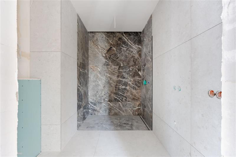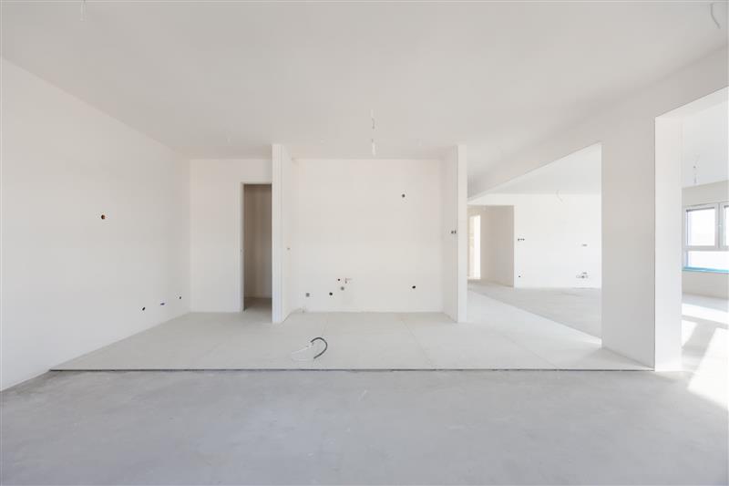 Apartament jest częściowo wykończony, rozpoczęte zostały prace w łazienkach. Dodatkowo wykonano kompleksowy