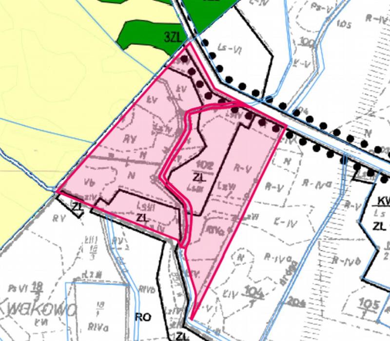 Grunt rolny, częściowo zalesiony, położony przy drodze asfaltowej. Przez środek działki przepływa ciek wodny. Teren urozmaicony i ciekawy. W Miejscowym Planie Zagospodarowania Przestrzennego teren przeznaczony pod: RO - teren produkcji rolnej oraz ZL - lasy wraz z niezbędną strukturą.