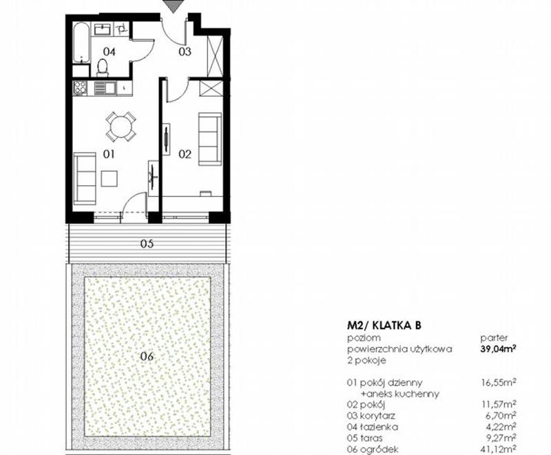 Mieszkanie deweloperskie: 2 pokoje, pow. 39,04 m2 z tarasem i ogródkiem w pobliżu centrum Koszalina.