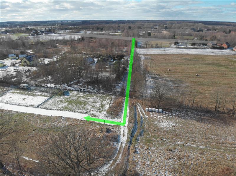 • Dostęp do drogi gminnej przez drogę wewnętrzną (udział w drodze) – na zdjęciu zaznaczonej na żółto.