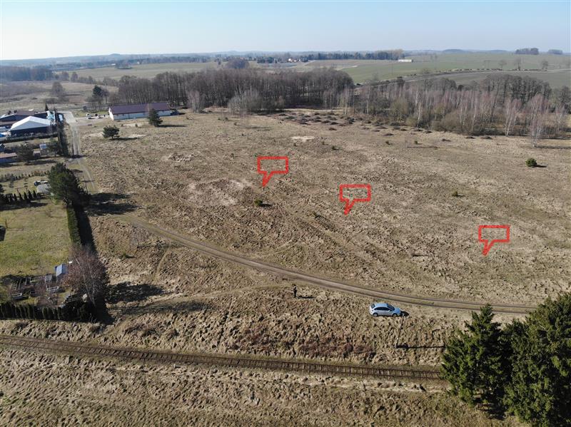 - Działka 81/8: powierzchnia 863 m2, współrzędne GPS: 54.137497, 16.283973? (na zdjęciu żółta)