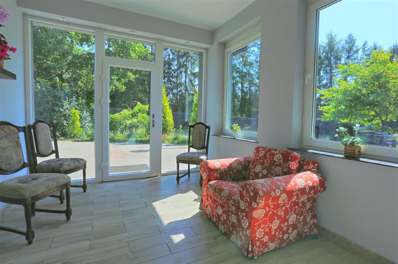 jasne, przeszklone wejście – idealne na oranżerię lub miejsce na rośliny,