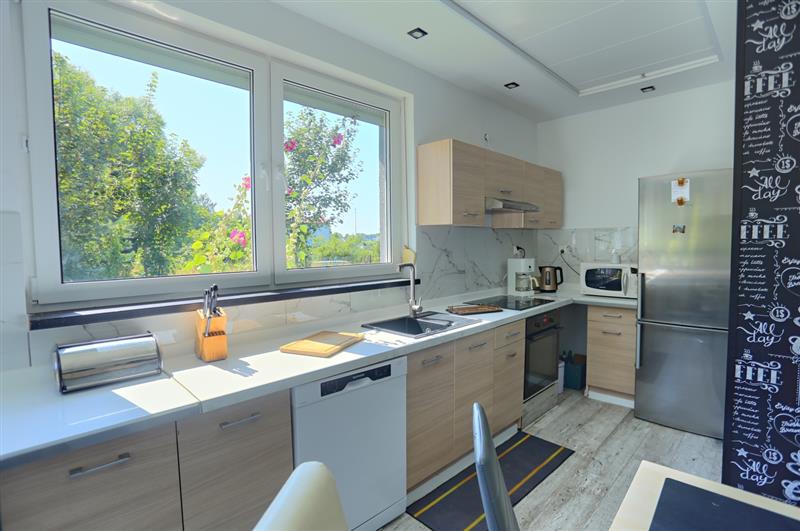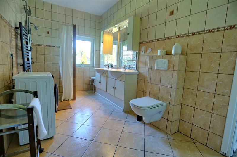 podłogi: w kuchni i łazienkach – terakota, w pokojach – panele,