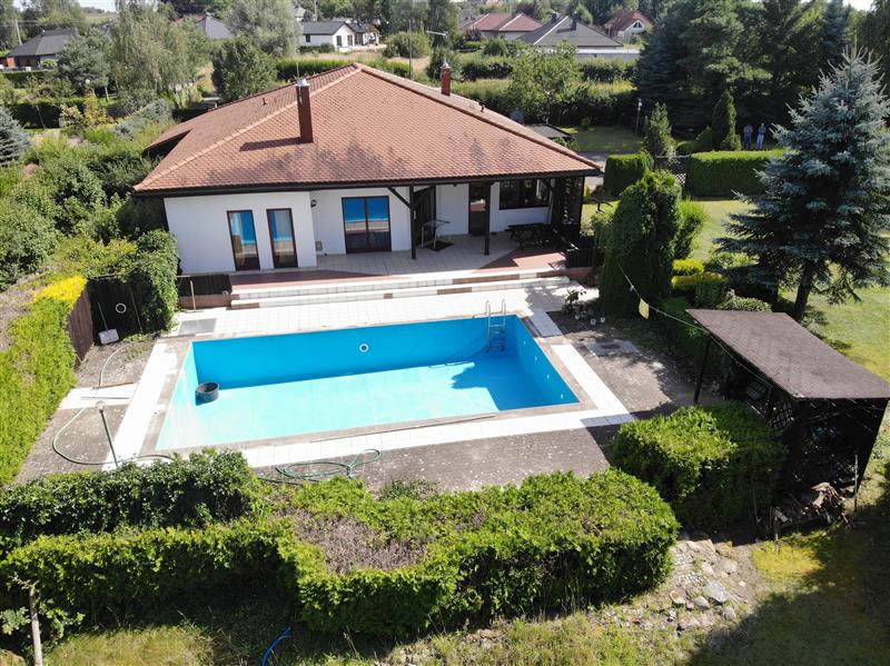 Na działce 5444 m2 znajdziesz ogród, który przez lata dojrzewał i nabierał charakteru. Dorodne drzewa, gęste krzewy i wyjątkowa roślinność tworzą intymną, niemal parkową przestrzeń – dając prywatność, cień i niepowtarzalny klimat. Do tego staw i basen – oaza relaksu tuż za progiem.