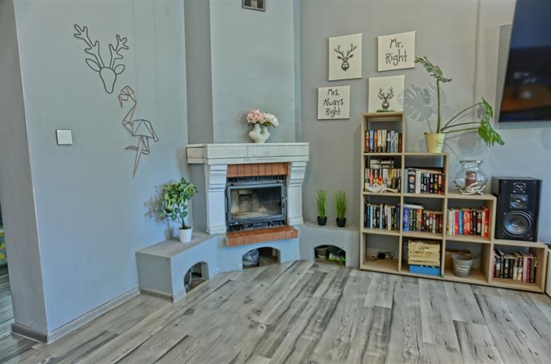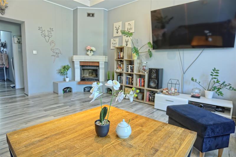 - Salon z kominkiem – przestronny, zachodnia wystawa okien