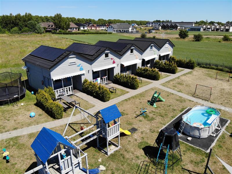 Dodatkowym atutem każdego domku jest przestronny, zadaszony taras z wygodnymi meblami wypoczynkowymi oraz prywatna część zielona (ok. 16 m2) z markizą oraz ławostołem. Całość oferowana z pełnym wyposażeniem: sprzęt kuchenny, pralki, łóżka, meble, telewizory, pościel – gotowe do przyjęcia gości od zaraz!
