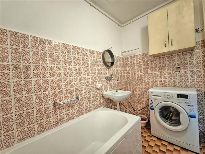 - jasny salon z wyjściem na balkon, z którego przechodzi się do dodatkowego pokoju (wymagającego remontu – ściany i podłogi),